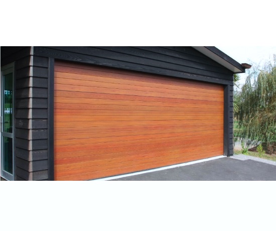 Consists of a number of hinged rigid sections which slide up overhead making it a stylish garage door.
