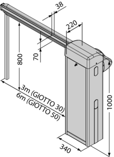 Control unit in upper position: the control unit located at the top of the barrier and protected by a solid aluminium housing enables connection, programming and maintenance operations to be performed with maximum ease and convenience.