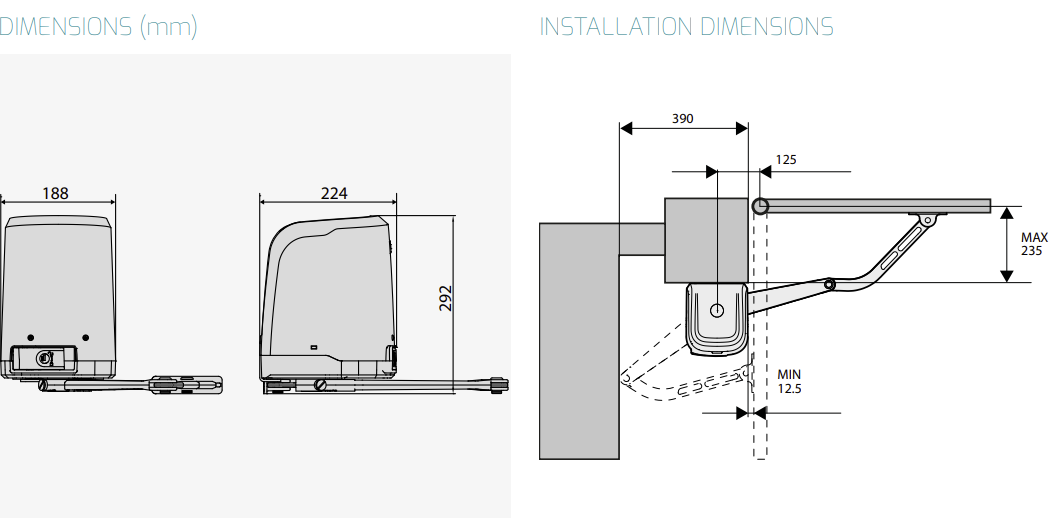 | Max. Weight of Door/Gate Wing | 200Kg |
