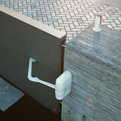 - - The articulated arm allows the installation of RÉVO in all those difficult situations where there is a significant depth between the leaf and the column, or with very narrow columns (10x10 cm).