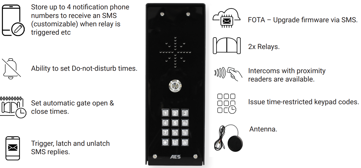 - 1 x AES Cellcom Prime 4G Architectural GSM Intercom with Keypad