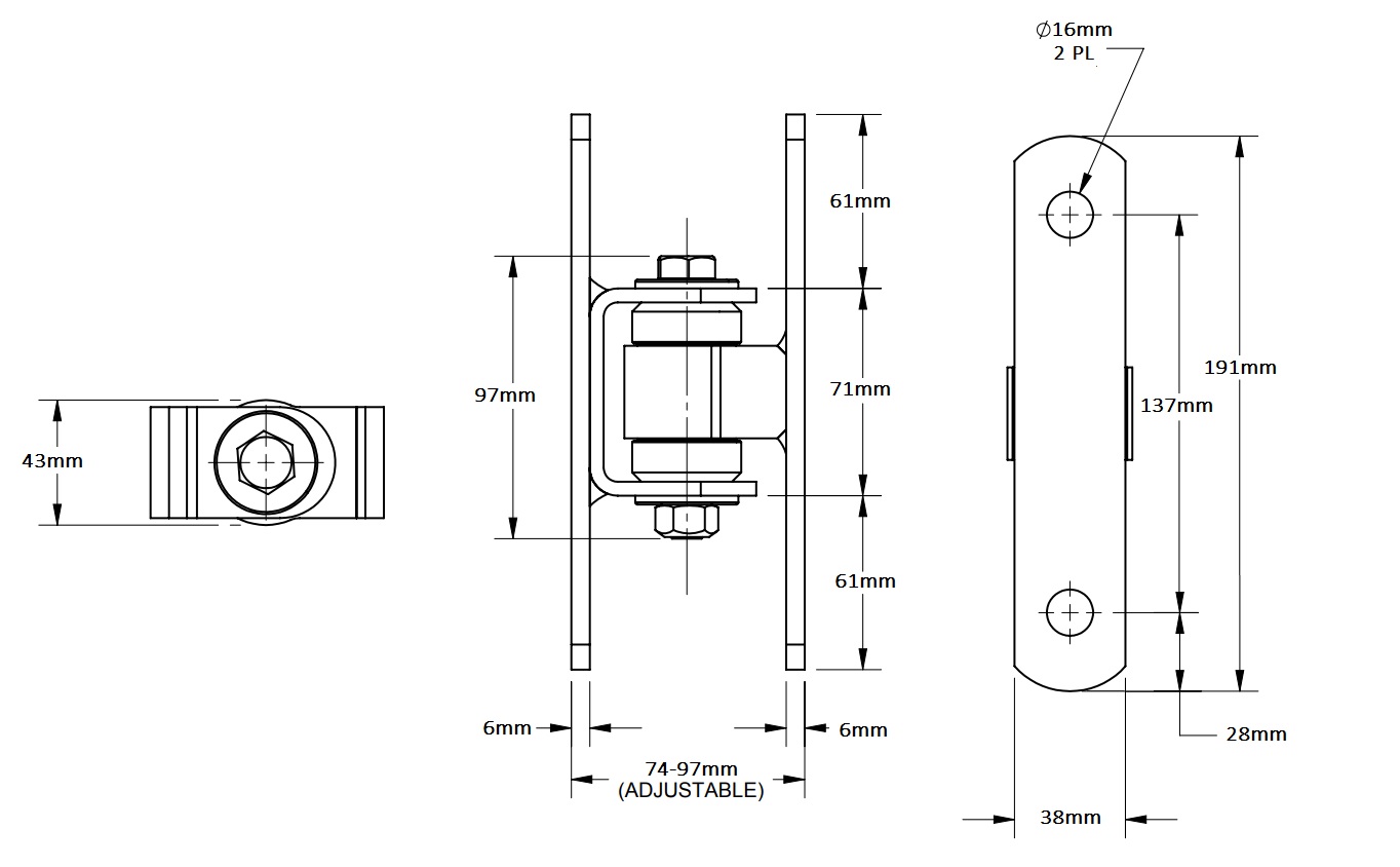 These are ideal for your square or round-post installations with adjustable brackets for high precision. They have flat, bolt-on brackets for through-bolting that are also adjustable for high precision. These BadAss products are assembled in the USA and CNC machined to the tightest tolerances. These hinges are for gates where welding isn't feasible. Suitable for high-end pedestrian gates!