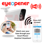 Watch your EYEOPENER Gate System through your Smart Phone with the Outdoor Video Surveillance IP Camera. Download the mobile App and connect via Wi-Fi Internet. Increase your Home Security with this Outdoor Surveillance Wi-Fi Camera, Have full video footage your guest before you allow access into your property. Simple and Easy to install Outdoor Camera with IP66 Water Proof protection class rating.